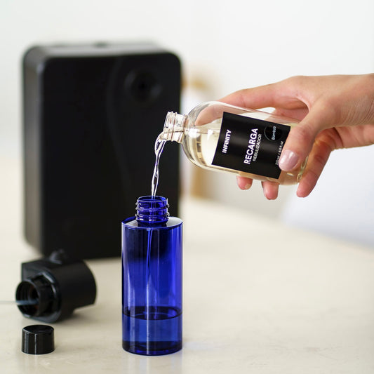 Sistema de pulverización inteligente que transforma las esencias en partículas muy finas con el objeto de proyectarlas en el aire y conseguir así un ambiente aromatizado, sin necesidad de emplear agua o calor.